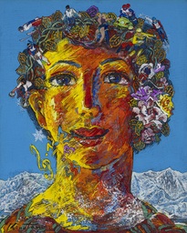 文化勲章を2021年に受章後、若手支援のため「絹谷幸二芸術賞」を創設。コロナ禍を経て「人と自然の共生」や「生命の尊さ」を主題に制作を続けた。最晩年作《彩雲渡る宝船》(2025年)には、光と色の調和のもとに平和と希望への祈りが込められ、絹谷芸術の集大成として人類への温かなメッセージを放っている。