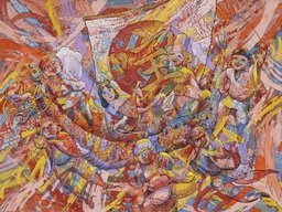 本展は、2025年に逝去した絹谷幸二の半世紀以上にわたる画業の軌跡を回顧し、画業を振り返る追悼展です。絹谷作品は、アフレスコという壁画古典技法やミクストメディアによる大胆な造形美と生命力豊かな色彩に溢れ、人々を魅了してきました。画題は日本の仏像や古代神話をユーモラスに描いたものから、富士山やヴェネツィアの風景など幅広く、夢と希望を与えるものから、戦争や自然破壊への警鐘を鳴らすものもありました。