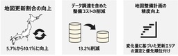 本ソリューションの導入により、ジオテクノロジーズは地図更新にかかるデータ調達を含めた整備コストを13.2%削減するとともに、調達データ上の地図更新割合が約1.8倍に向上しており、地図整備業務の大幅な効率化と品質向上を実現しました(図2)。