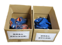 クリーニング済みリユース制服 使用済みユニフォームと安全靴の回収箱