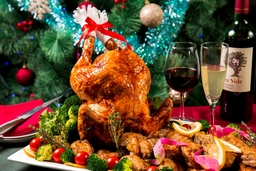国産鶏を使用した丸鶏ローストをライブキッチンで提供いたします。現地調合のオリジナルハーブソルトで仕上げた一品は、クリスマスディナーらしい臨場感を演出し、ビュッフェの華やかさをさらに引き立てます。