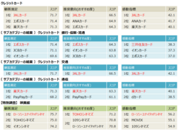 ※各業種のランキング対象企業・ブランドのうち、原則として、顧客満足・推奨意向(おすすめ度)・感動指標の各3位以上の企業・ブランドを表示。その他の指標の結果については、別添資料参照。近郊鉄道、クレジットカードについては、サブカテゴリーも表示。