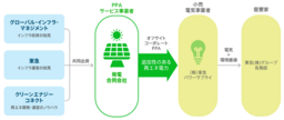 ※2 コーポレートPPA(Power Purchase Agreement:電力購入契約)は、企業が再生可能エネルギーを発電事業者から長期にわたって固定価格で購入する契約です。企業がCO2排出量削減に貢献できるエネルギー調達手法として注目されています。オフサイトコーポレートPPAとは、遠隔地の発電施設から一般の送配電網を介して電力を調達する形態で、発電事業者が電力と環境価値をセットで需要家に供給する形態です。