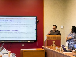3. プレゼンテーション 2.「世代間ギャップの分析:学生と市民の視点」 Jennifer Seru/Mylast Bilimon(CMI教授)