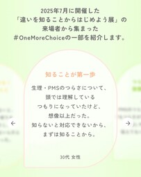 「生理のつらさを、我慢しなくていい社会へ。」 ツムラ #OneMoreChoice プロジェクト 約5,000人が来場した期間限定の企画展を、タイミングや場所問わず体験できるWeb展開へ 一人ひとり違う生理・PMSに伴う症状・つらさや日常への影響を可視化