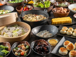 朝食のライブキッチンでは、 6 種の具材から選べる握りたておにぎりコーナーや山の具材を使った上州おやきと上州野菜の網焼きなど熱々の料理を提供します。料理長が厳選した 5 種たまごの食べ比べ&約 20 種のお好みに合わせて選べる醤油バー、郷土料理のおっきりこみ、赤城鶏の煮込みなど、上州グルメを存分にご堪能ください。