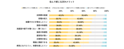 特に、一般的な住宅(非ZEH住宅)にお住まいの方の半数以上(54.5%)が「冷房使用が増え、電気代が上昇した」ことを生活の変化として挙げています。一方で、断熱性の高いZEHにお住まいの方では、その割合が45.9%にとどまっており、住まいの性能が経済的な心理負担を和らげていることが分かります。