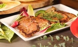 千葉県銘柄豚「東の匠」ならではの、脂と赤身のバランスが絶妙な肩ロースを使用。ジンジャー香る特製ダレに漬け込み、香ばしく焼き上げました。