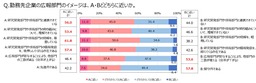 技術者に自社の広報部門のイメージを対比させて質問したところ、「研究開発部門や技術部門と連携できている」が56.0%(Aに近い11.0%+どちらかというとAに近い45.0%)という結果になりました。上場の状況別で広報部門との連携を見ても、東証プライム上場企業で57.4% (Aに近い13.8%+どちらかというとAに近い43.6%)が東証スタンダード51.5%(Aに近い8.6%+どちらかというとAに近い42.9%) 、上場していない企業52.4%(Aに近い7.4%+どちらかというとAに近い45.0%)と上場企業・非上場企業に関係なく部門間の連携にはまだまだ課題があることが明らかになりました。