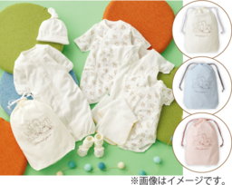 生まれてすぐの赤ちゃんが身に着けるアイテムを、すべて日本製で揃えたセットです。