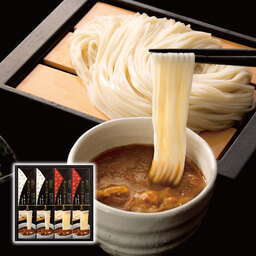 やや細めに仕上げた、もっちり感としなやかなコシが特徴の定番商品「花山うどん」、ご当地うどん日本一を決める大会「U-1グランプリ」)で3年連続優勝に輝いた、茹で上がり幅5センチの幅広麺「鬼ひも川うどん」を、鶏肉と野菜の旨み・上品な出汁が香るカレーつゆでお召し上がりください。