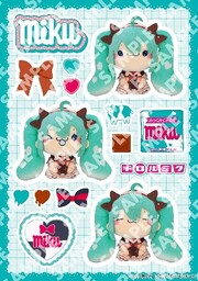 フリュー株式会社から展開予定のアミューズメント専用景品(プライズ)から、フリューオリジナルぬいぐるみシリーズ「もちぴこ」のチロルミクを使用!1枚でも、カットしてフレークシールにしても可愛いデザインです。
