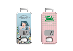 歩数計には3D(3軸加速度)センサーが搭載されており、付属のストラップで首から下げられるのはもちろん、バッグやポケットに入れた状態でも歩数を正確にカウントできます。デザインは2種類で、一つは温湿度計と同じデザインに東京ドームでのライブタイトルと日付を組み合わせた「『渡辺直美 (20) in 東京ドーム』コラボモデル」。もう一つは渡辺直美さんがよく使う言葉で、ファンの間で「直美語」として親しまれている「うにょ」をデザインした「うにょモデル」です。
