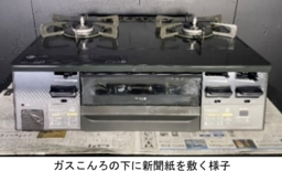 ガスこんろの下に段ボール、新聞紙やビニールシートなどの燃えやすいものを敷くと、飛び散った油に引火して火災につながるおそれがあります。ガスこんろの下には可燃物を敷かないようにしてください。