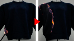ガスこんろの炎は、目に見えている部分以外にも広がっているため、目に見えている炎から離れていても着火するおそれがあります。特に冬は重ね着などで衣服が厚くなるため、衣服の過熱や着火に気付きにくくなります。さらに、衣服が毛羽立っている状態などでは、着衣着火時に表面フラッシュ現象が発生することがあり、髪などに着火するおそれもあります。衣服と炎との距離を常に意識し、近づきすぎないよう注意してください。