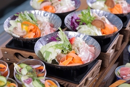 当レストランは、成田の緑豊かな景色と、離着陸する飛行機を間近に望む開放的なロケーションが魅力です。料理長が目の前で握るにぎり寿司や、揚げたての天ぷらをはじめ、旬の魚介を使ったお造り、体を温める鍋料理など、和の技が光る多彩なメニューをビュッフェスタイルでご提供いたします。