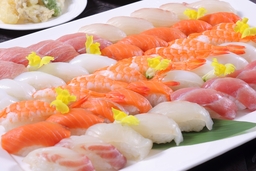 料理長が厳選した新鮮なネタを、目の前で一貫ずつ丁寧に握ります。マグロや真鯛、サーモンなど、その日の旬の魚介をご用意。口の中で広がる豊かな風味と素材本来の旨みをご堪能ください。
