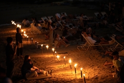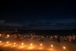 前回の「TOTAL LUNAR ECLIPSE 2025」の様子。波音だけが響く静かなビーチに多くの参加者が集まり、キャンドルの灯りとともに幻想的な一夜を過ごしました。(2025年9月7日・北島清隆氏 撮影)