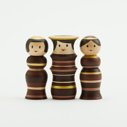 3体がぴったりと寄りそう「ルビンのこけし フレンド」は、3つ並べても幅約12cmと手のひらに収まる可愛らしいサイズが特徴。茶色とゴールドを基調にした「チョコレートカラー」を、期間限定で1年ぶりに再販いたします。インテリアとして暮らしに馴染む本商品は、バレンタインの贈り物としてもおすすめです。