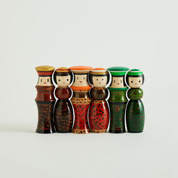 老舗百貨店「松屋」の地域共創プロジェクトの一環として、松屋銀座と青森県黒石市との協働により、青森の伝統工芸品「津軽こけし」を未来に繋ぐことを目指し誕生。日本を代表するグラフィックデザイナー佐藤卓氏が“人との繋がり”をテーマにデザインし、壺のシルエットが向き合った顔にも見える「ルビンの壺」から着想を得て「ルビンのこけし」と名付けられました。津軽こけしの名工が一つずつ丹精を込めて削り出した、木の温もりと繊細な技術が感じられる逸品です。※こけし工人…伝統こけしを作製する職人のこと