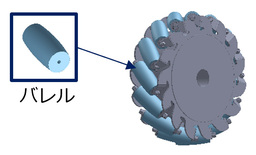メカナムホイールは、車輪の周囲に45度に傾いたローラ(バレル)を複数配置した特殊な車輪です(図1)。4つの車輪の回転方向を個別に制御することで、車体の向きを変えずに前後左右あらゆる方向へ移動できます。狭い通路での長尺物搬送や、アームを搭載した作業ロボットなどに採用されています。