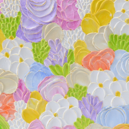 ③日常の中にある「身近な幸せ」に目を向け、制作しています。見る人それぞれの身近にあるものや出来事と重ねながら、ご鑑賞いただけましたら幸いです。凹凸や光沢があり、光の加減で作品の印象が変化します。角度を変えながら、近くでご覧ください。