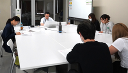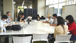 箔座担当者を交えての中間報告会の模様。学生たちは企業担当者からの意見等も聴きながら解決策のブラッシュアップを行った。