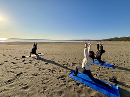 宿から歩いて五分で眼前には海岸線が広がり、砂浜にヨガマットをひろげる。