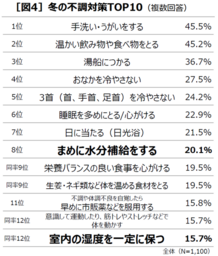 冬の不調対策TOP3 「手洗い・うがい」「温かい飲み物・食べ物の摂取」「湯船につかる」