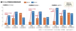 一方で、小学生・中学生の子どもの衣家事の参加率が全体的に減少しています。特に、「洗濯物をとりこむ・たたむ・しまう」という工程に関しては、10~20ポイント大幅に減少するなど、親に衣家事を任せている傾向が見られます。