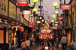 商店街では、各商店が「一店一宝」や「一店一品」として昭和のお宝の展示や商品を販売、週末の日曜祝日には昭和32年式のボンネットバスも運行するなど、懐かしい昭和の町並みと温かい雰囲気を体験できます。