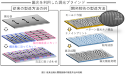今回開発した調光ブラインドは、重ね合わせた2枚のシートを数ミリメートル程度スライドさせるだけで、従来はON/OFFしかできなかった光の透過率を多段階で調整できます。そのため、日差しがまぶし過ぎると感じたときに片手で手軽に快適な明るさに操作できます。シートは、専用に設計された偏光パターンをナノインプリント技術で一括に製造できます。光の透過率の制御に電源を必要とせず、近赤外・赤外光の調光も可能なため、住宅向けのニーズがある遮熱効果の調節への応用が期待できるほか、将来的にはセンサー周辺部材への活用などより幅広い分野への展開が期待されます。