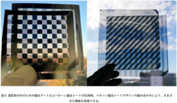 今後は、大面積化技術の構築・耐久性評価を進め、企業との連携を通じて本技術の社会実装を推進し、あらゆる生活環境、ビジネス環境での省エネ・快適性向上を目指します。さらに、図5に示した応用例のように、パターン偏光シートは意匠性を付与した偏光アート表現なども可能です。住宅用ブラインドの調光時に模様を浮かび上がらせるといった応用もできるほか、アート分野、エンターテインメント分野などで応用が期待できます。こうした異分野への展開も視野に入れ、幅広い用途での研究開発を進めます。