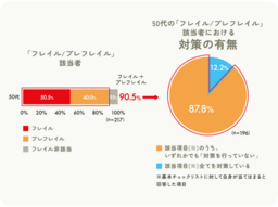 2024年12月にツムラが実施した調査(*2)によると、50代の約9割(90.5%)が「フレイル」または「プレフレイル」に該当することが明らかになりました。しかし、この「フレイル」または「プレフレイル」に該当する50代のうち約9割(87.8%)は、自らの症状や状態に対して「特に対策をしていない」と回答しています(*3)。50代のほとんどの人がフレイルまたはプレフレイル状態になっているにも関わらず、早期に適切な対策が取られていない実態が浮き彫りとなりました。