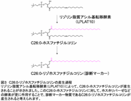 ◆副腎白質ジストロフィーの診断マーカー(C26:0-リゾホスファチジルコリン)の産生に関与する酵素を同定しました。
