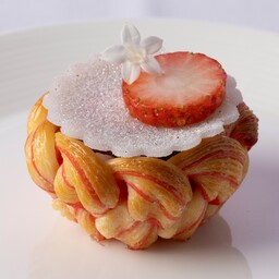 グランマルニエを効かせたカスタードクリームと甘酸っぱい苺、サクサクとした食感のパイ生地が調和した帝国ホテル伝統の一品です。