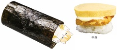 にゃんこが包まれている様子をイメージし、シャリ・ランチョンミートカツ・マヨネーズ・だし巻きたまごを海苔で包みました。ランチョンミートを自社セントラルキッチンで衣付けしてカツにすることで、たまごとマヨネーズのまろやかさと合わさり、バランスのとれた味わいに仕上げています。