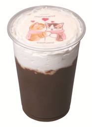 チョコミルクとホイップの上には、にゃんこたちがマフラーをつけて寄り添いあっているかわいいイラストがデザインされた食べられるシートを飾り、バレンタインの時期にぴったりなチョコレートドリンクです。