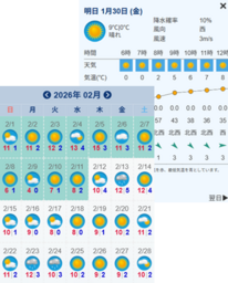 試験日がまだ先の場合も、90日間予報があるので、現時点での試験日の天気・気温の見込を確認できます。