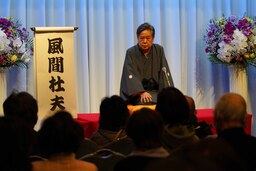 イベント後半には、風間杜夫さんと三遊亭円楽さんによる落語の二人会も開催され、名人芸に来場者は大いに魅了されました。公演の最後には、お二人が来場者一人ひとりと握手を交わすサービスも行われ、会場は温かな拍手と笑顔に包まれながら、特別なひとときの締めくくりとなりました。