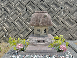転勤族から夫の実家に帰って約40年近くを過ごした主婦が、大病を患ったのを契機にお墓づくりを決意しました。家族と相談し、昔話に出てくるような古びた実家の庭の石灯籠をお墓にリメイクすることを思いつきます。かつて暗い足元を照らしてくれた庭の石灯籠は、楽しかった時も、大変だった時も、庭から静かに家族を見守っていてくれました。気の晴れない日でも横を通れば何故か、心がほっこりと自然に心が和んだそうです。これまでのお墓の既成概念にとらわれない大胆な発想の石灯籠型お墓です。