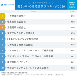 転職・就職のための情報プラットフォーム「OpenWork」を運営するオープンワーク株式会社(所在地:東京都渋谷区、代表取締役:大澤 陽樹)は、社員・元社員から高く評価された企業を表彰する「働きがいのある企業ランキング2026」を発表しました。