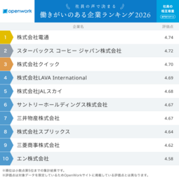 「働きがいのある企業ランキング」特設サイトも併せてご覧ください:https://www.openwork.jp/award/
