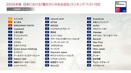 「働きがいのある会社」に関する調査・認定を行うGreat Place To Work® Institute Japan(本社:東京都港区、代表取締役社長:荒川陽子、以下GPTW Japan)は、 2026年版 日本における「働きがいのある会社」ランキング ベスト100を、2月6日(金)に発表しましたので、お知らせいたします。