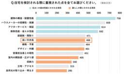 アンケートの結果、住宅を検討される際の重視項目では、「建物の構造・耐震性能」や「アフターサービス・保証」「断熱性能・省エネ性能」といった住まいの基本性能に続いて、「高い天井」がランクインしています。
