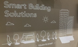 日立のスマートビルサービスをデジタルサイネージでご紹介するコーナー(右)