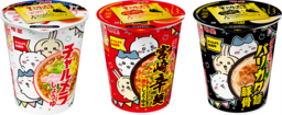 「しょうゆラーメン」「宮崎辛麺」「バリカタ麺豚骨」それぞれにつき、5食パックは1パターン、個食は5パターン、タテ型カップは1パターンの「ちいかわ」デザインを展開。全て数量限定となります。