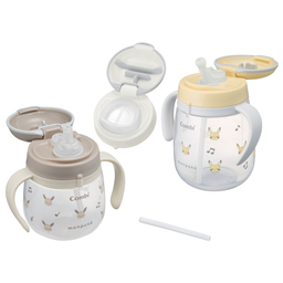 別売りで、ラクマグシリーズの4ヵ月頃から使える「はじめてストロー」、5ヵ月頃から使える「はじめてコップ」も販売飲み口を付け替えると成長に合わせて長く使うことができます。