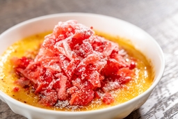 オーストラリア和牛の焼きしゃぶ/マスカルポーネのクレームブリュレ いちごのコンジュレを添えて
