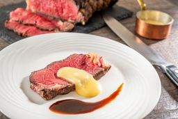 しっとりと仕上げたローストビーフに、とろっとモッツァレラチーズをのせて、お好みのソースとともにお楽しみください。